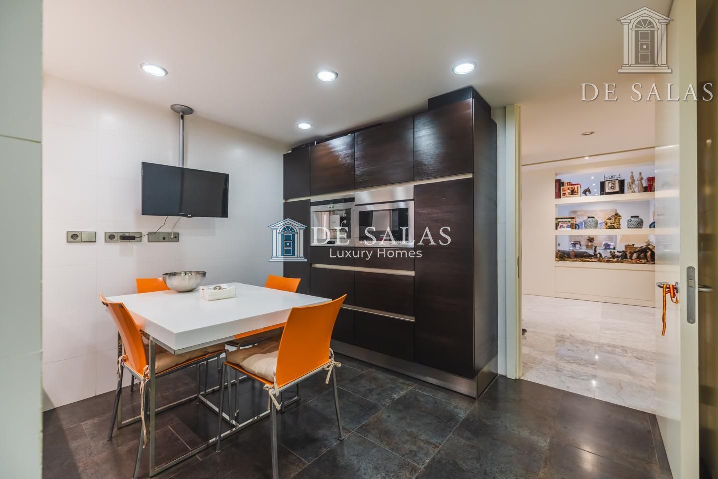 La cocina cuenta con una zona independiente destinada a office, con muchos armarios para almacenaje y área desayunador. La comodidad de esta cocina se completa con el espacio de trabajo, con encimera de Corian, frigorífico americano y vinoteca integrada. Además dispone de zona destinada a lavandería y puerta de servicio. Desde la cocina tenemos salida a una segunda terraza de 15m2, perfecta para comer y cenar en los meses más cálidos y soleados del año.