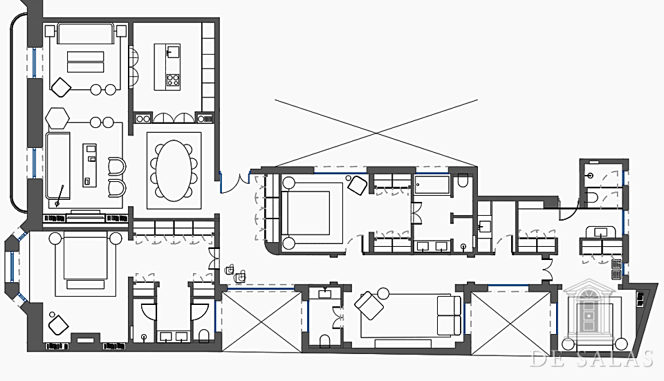 De Salas presenta esta excelente propiedad exterior en Almagro. La vivienda tiene 322 m2 construidos y actualmente está completamente reformada. La propiedad tiene excelentes distribución. Consta de 3 dormitorios en suite, aseo de cortesía y una zona social con amplio salón – comedor con dos balcones al exterior y amplia cocina. La vivienda cuenta con techos altos de 3,10 m de altura.