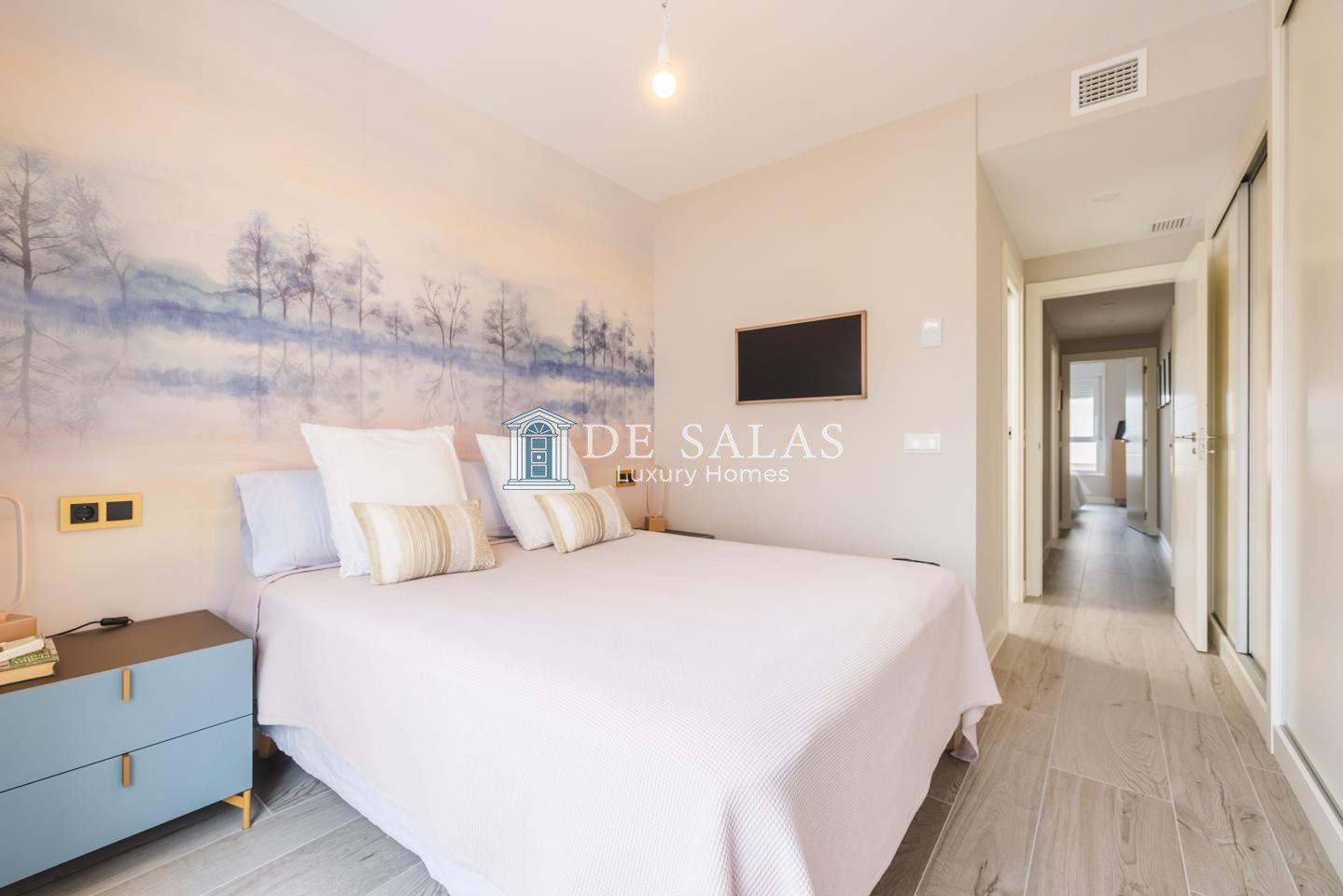 El diseño interior apuesta por una estética moderna y funcional donde el acogedor salón se convierte en el punto de encuentro principal, con acceso directo a la terraza al igual que la cocina independiente. La zona privada se distribuye en dos dormitorios de buen tamaño y dos baños completos, todo ello acondicionado con las mejores prestaciones tecnológicas como suelo radiante, aire acondicionado centralizado y un avanzado sistema de domótica que garantiza el máximo confort térmico y eficiencia en el hogar.