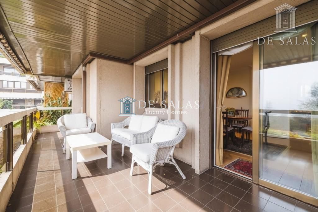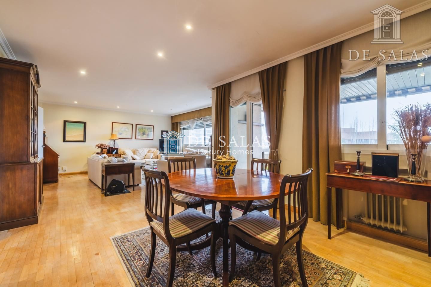 El acceso a la vivienda se realiza a través de un elegante hall recibidor que conduce a un impresionante salón comedor. Este espacio, de dimensiones generosas tras haber incorporado lo que originalmente era un quinto dormitorio, conecta directamente con una bonita terraza con agradables vistas. La zona de día se completa con una cocina de gran tamaño, perfectamente equipada, que incluye cuarto de lavadero independiente, despensa y un dormitorio de servicio con baño propio, garantizando una funcionalidad total para el día a día.