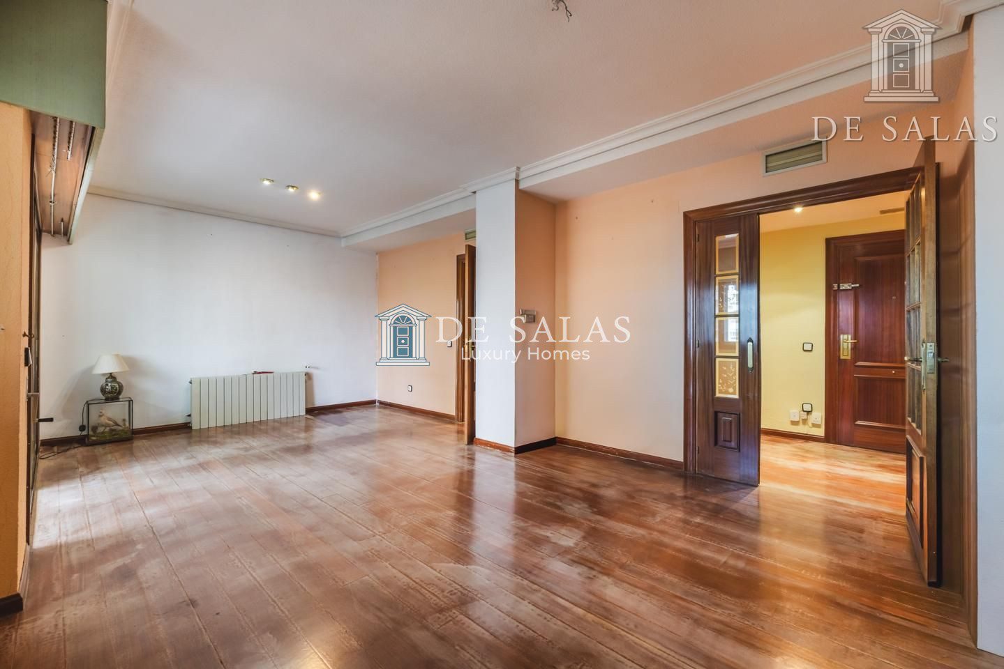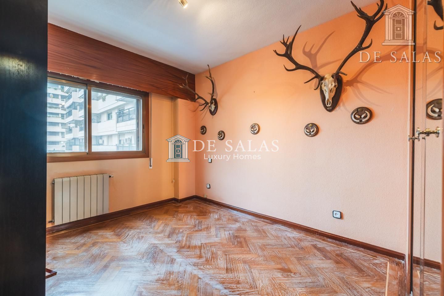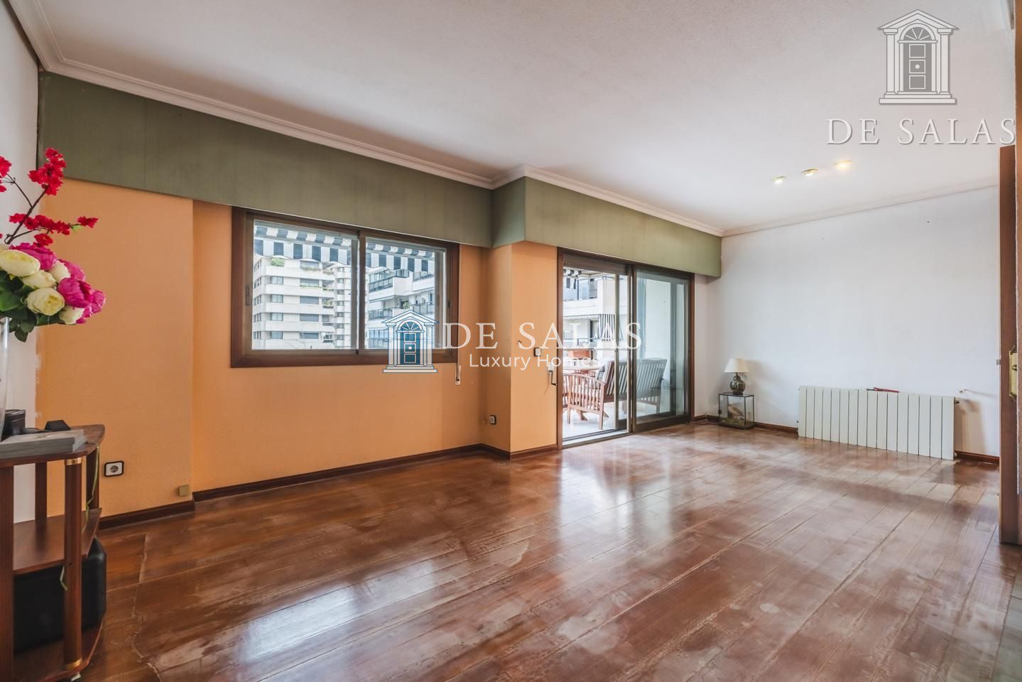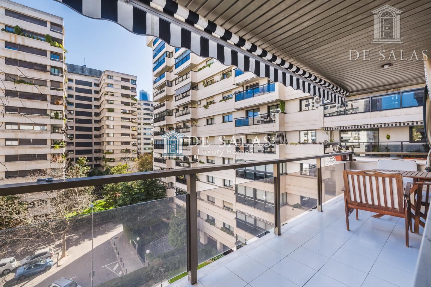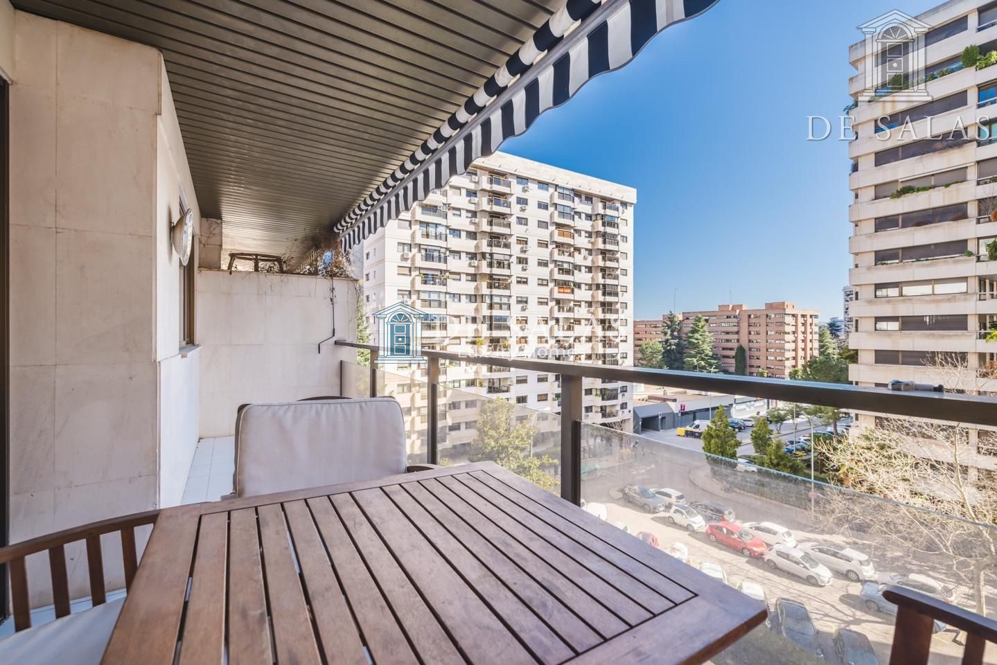 La distribución interior comienza con un hall de entrada principal que da paso al salón comedor amplio y acogedor que dispone de acceso directo a una estupenda terraza soleada, mientras que la cocina cuenta con entrada de servicio independiente y un práctico cuarto tendedero. La zona de descanso la configuran cuatro dormitorios de generoso tamaño, entre los que destaca la suite principal con su propio baño privado, además de contar con un segundo baño completo y un aseo de cortesía para las visitas. En cuanto a sus materiales, la vivienda está equipada con puerta acorazada, suelos de parquet de espiga, ventanas con doble climalit y carpintería de madera sapelí, todo ello complementado con aire acondicionado por conductos y calefacción individual de gas natural.