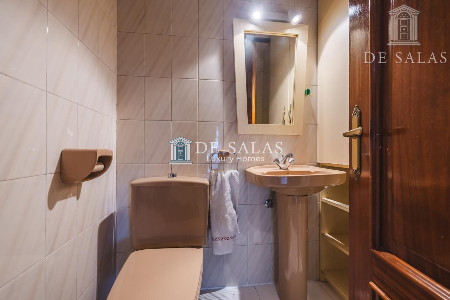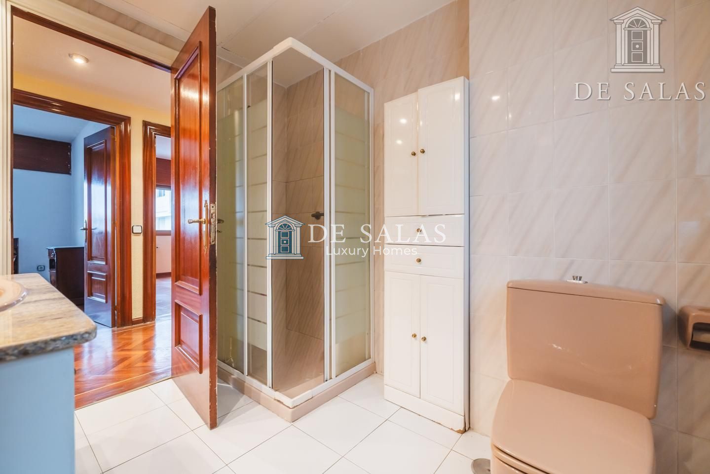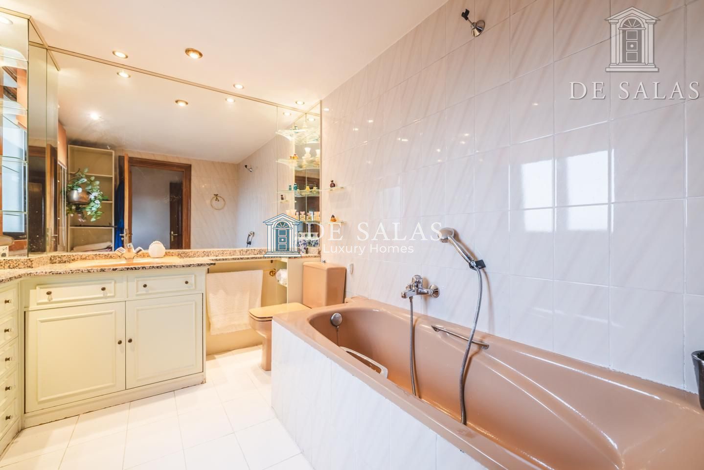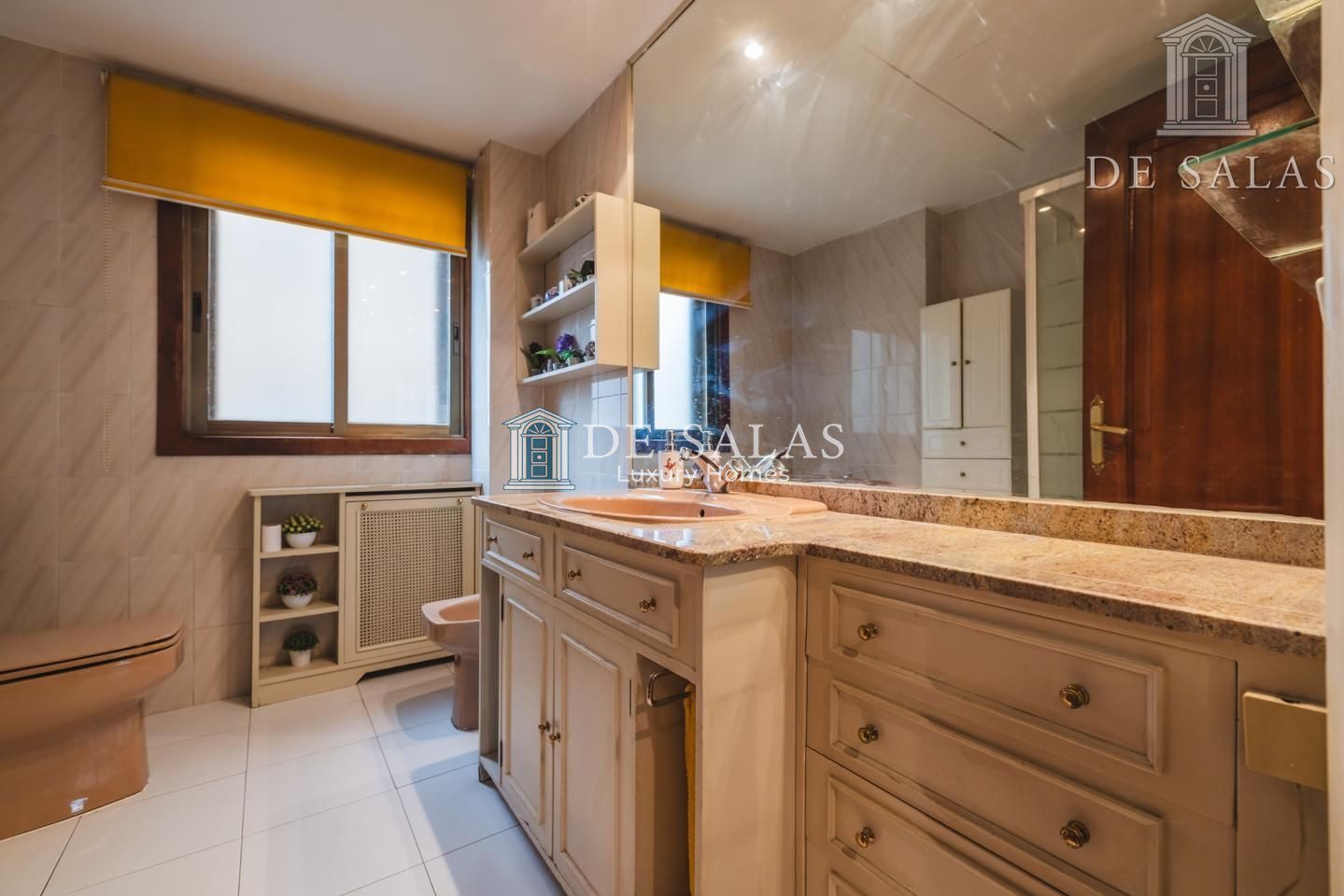 La distribución interior comienza con un hall de entrada principal que da paso al salón comedor amplio y acogedor que dispone de acceso directo a una estupenda terraza soleada, mientras que la cocina cuenta con entrada de servicio independiente y un práctico cuarto tendedero. La zona de descanso la configuran cuatro dormitorios de generoso tamaño, entre los que destaca la suite principal con su propio baño privado, además de contar con un segundo baño completo y un aseo de cortesía para las visitas. En cuanto a sus materiales, la vivienda está equipada con puerta acorazada, suelos de parquet de espiga, ventanas con doble climalit y carpintería de madera sapelí, todo ello complementado con aire acondicionado por conductos y calefacción individual de gas natural.