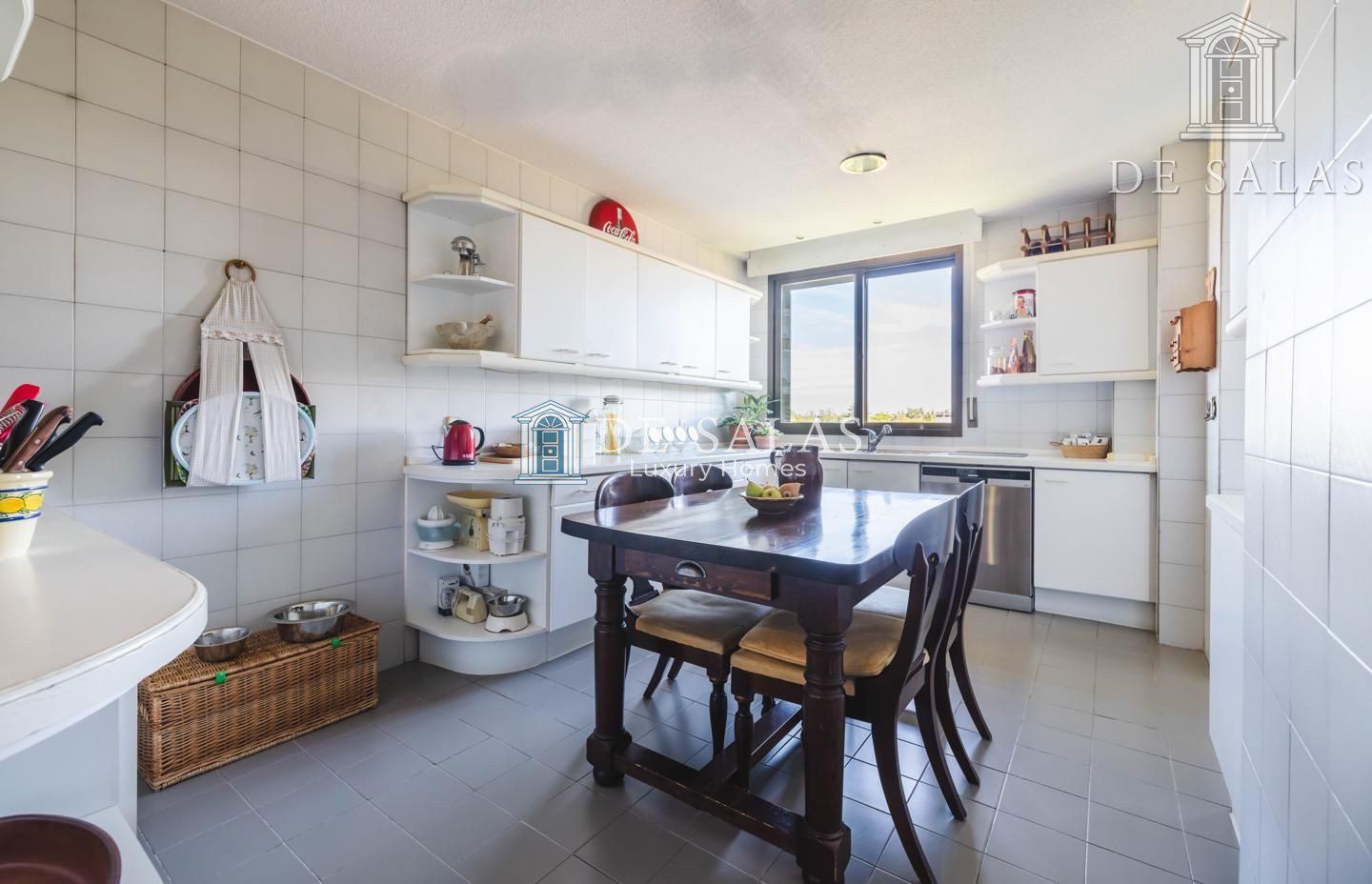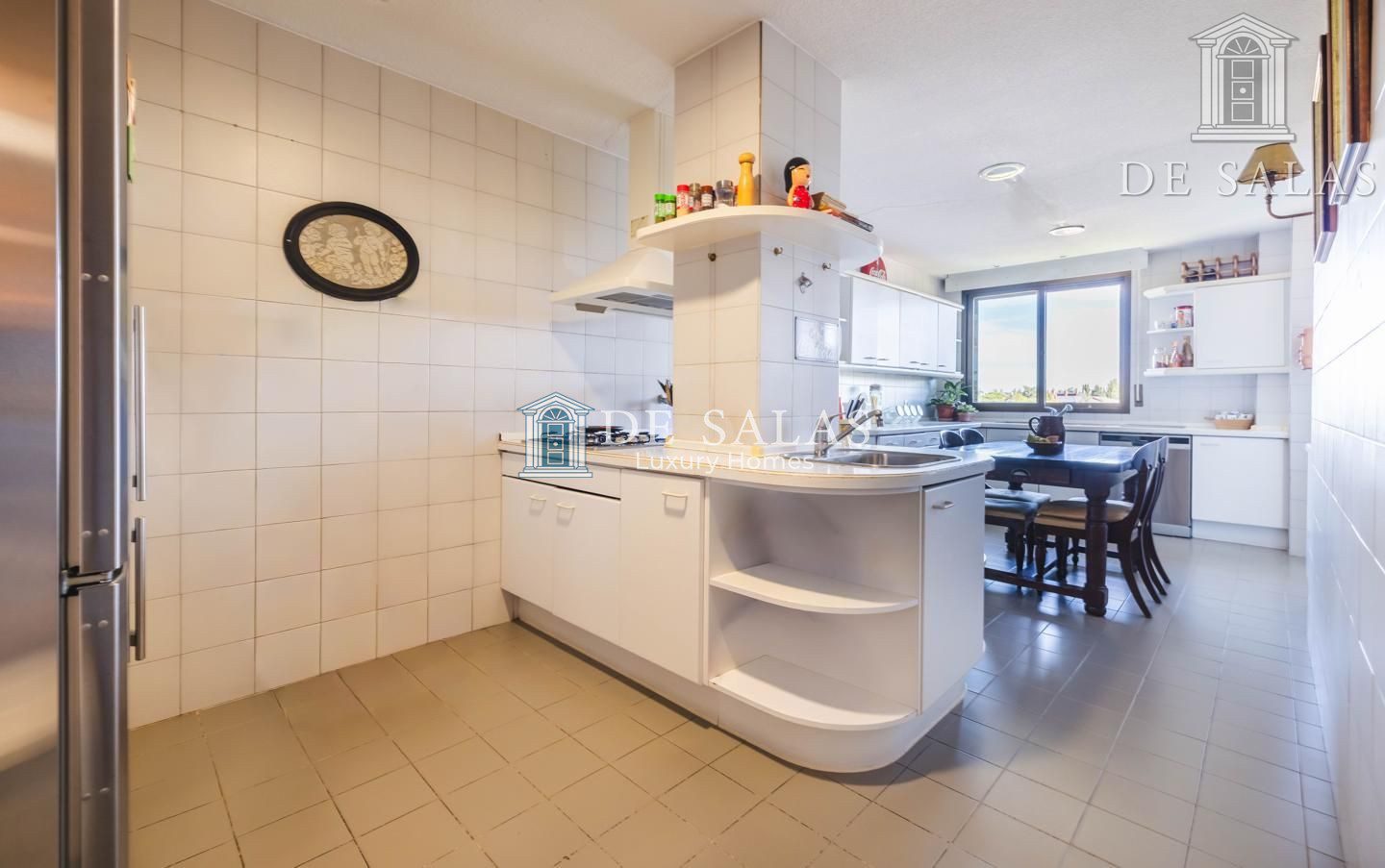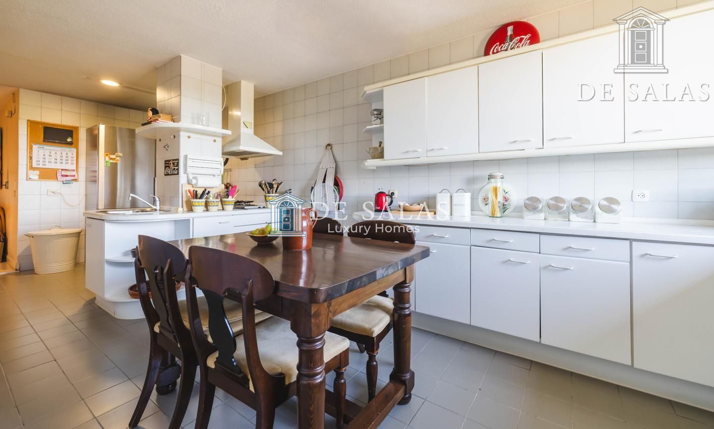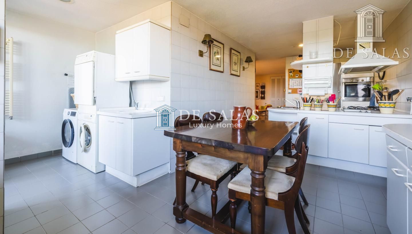 La cocina es de grandes dimensiones, pensada para la vida familiar, e incorpora una práctica zona de office, una amplia despensa y una terraza lavadero. Además, cuenta con una acogedora zona de estar abierta que se integra perfectamente con la cocina.