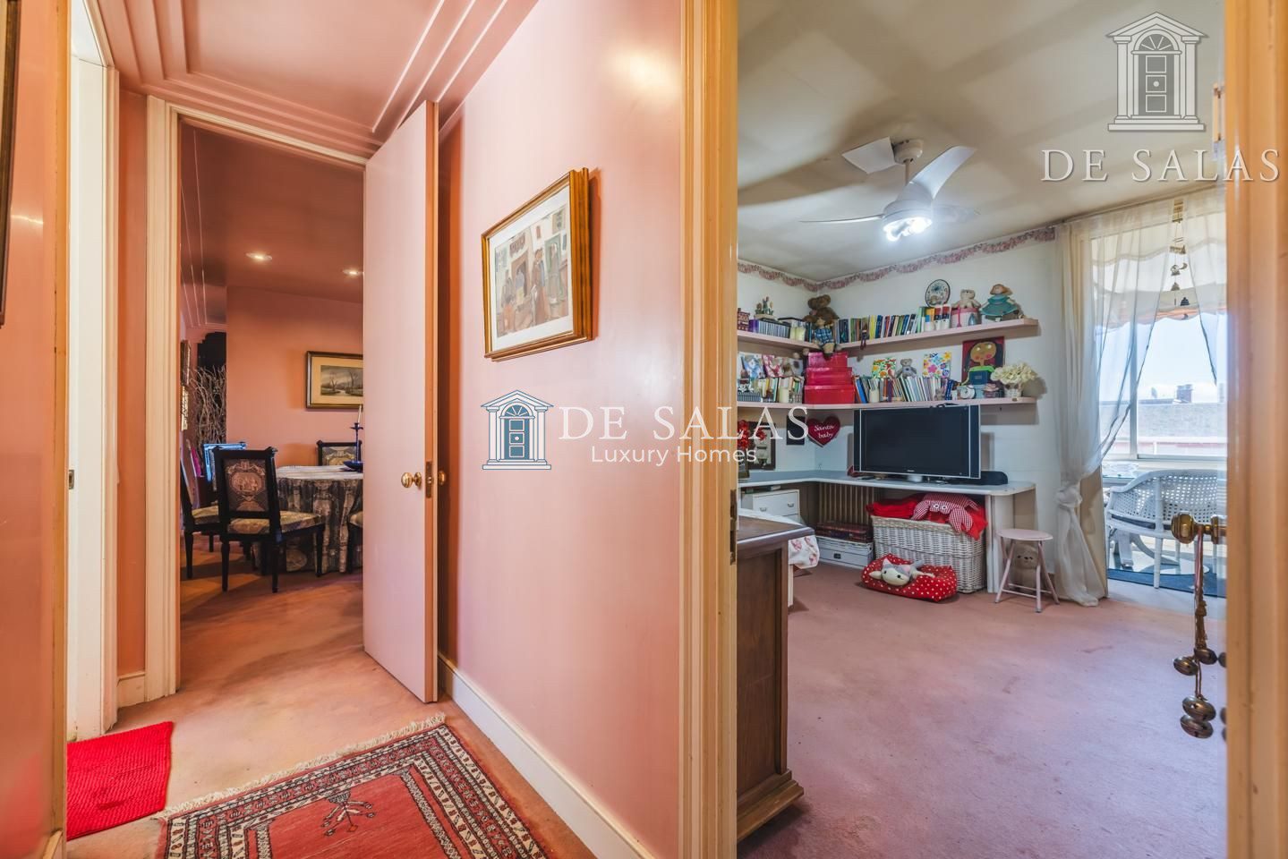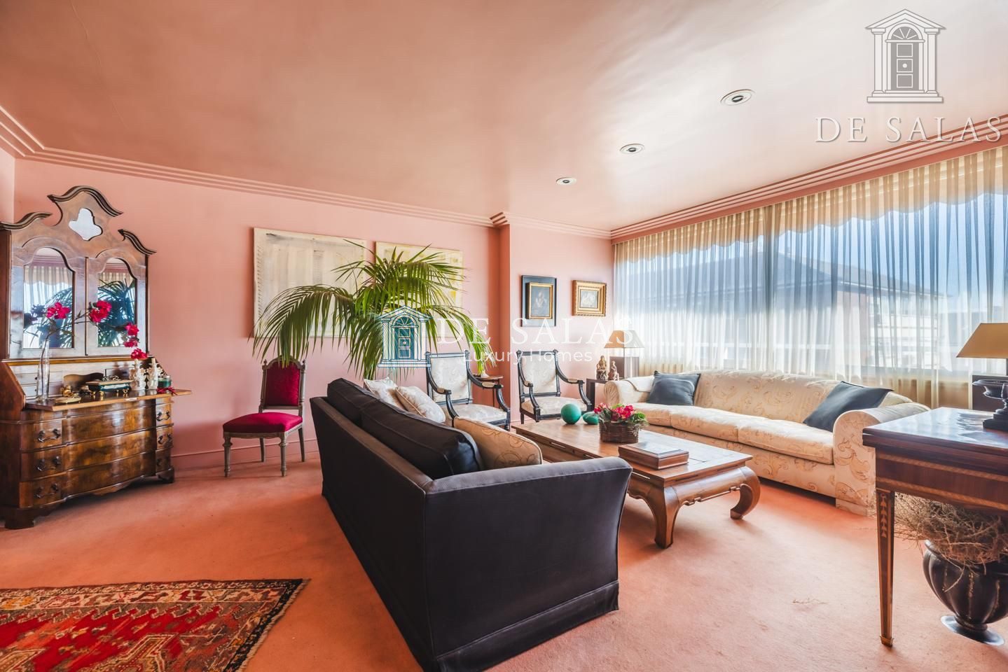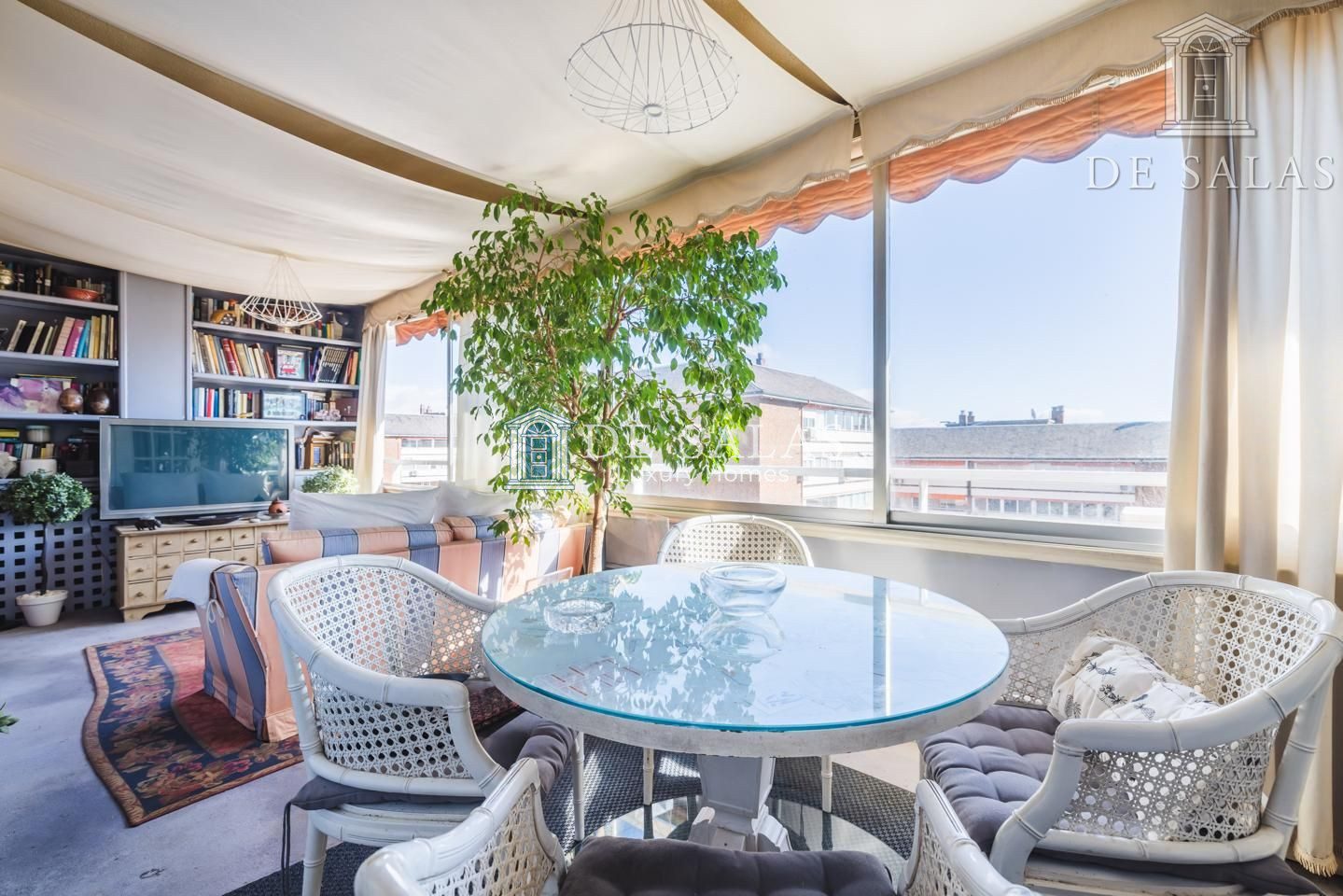 Llama la atención el espacioso salón con comedor independiente, decorado en varios ambientes, al que se ha añadido la terraza. Gracias a esta reforma, se ha conseguido ganar una acogedora sala de estar con otro comedor, ideal para el día a día, aunque puede revertirse si se desea tener nuevamente la terraza.