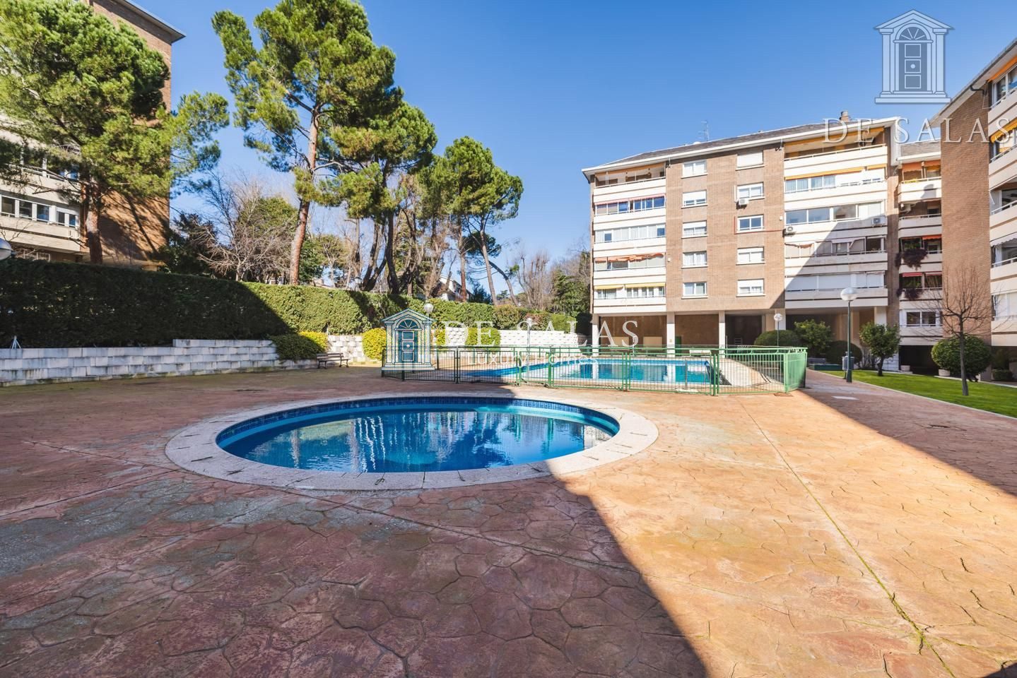 Las zonas comunes, muy amplias, se componen de piscina de adultos, piscina infantil, solarium, zona de juegos para los más pequeños, cuarto de celebraciones y conserje con vivienda en el mismo edificio.
