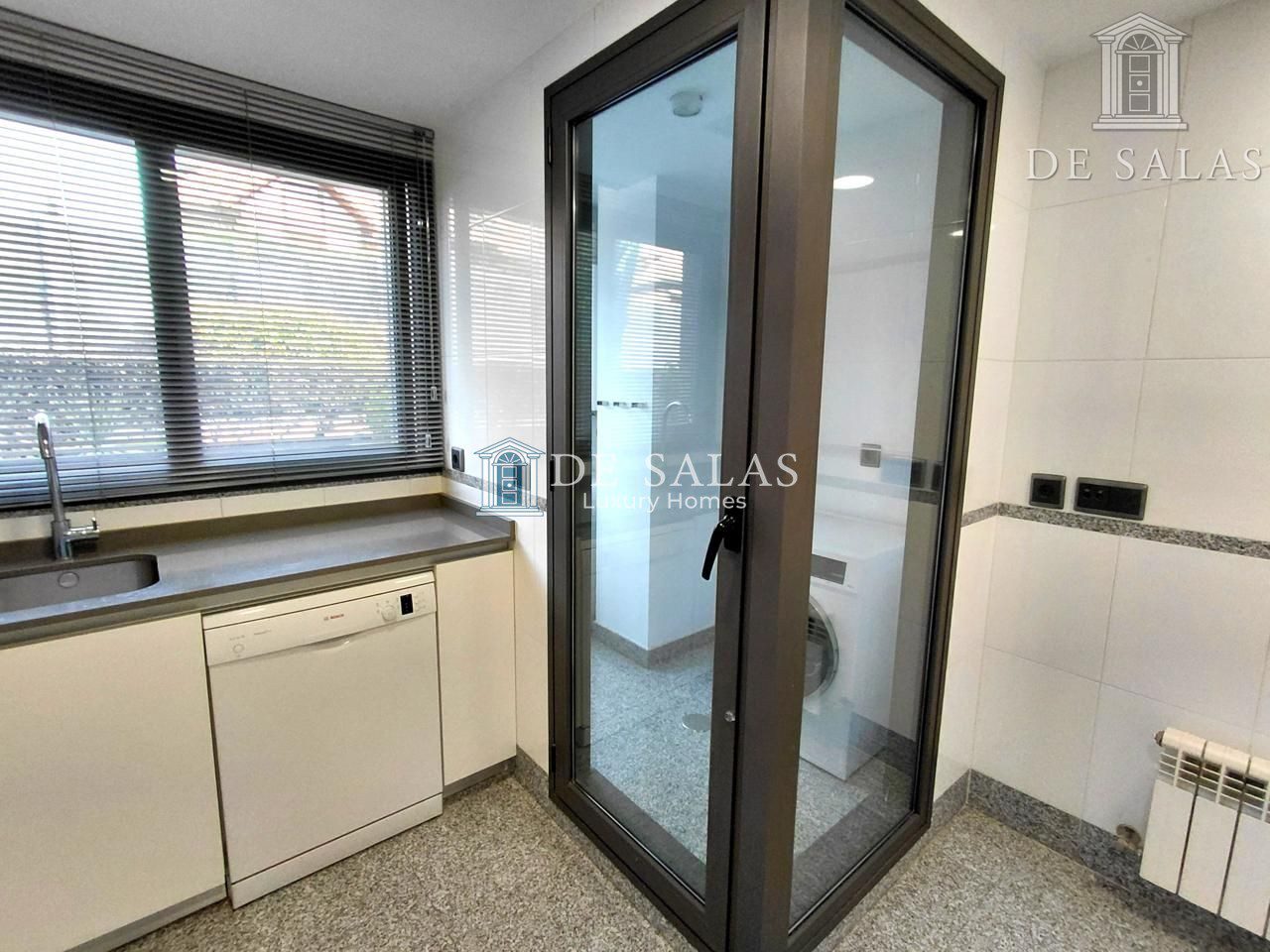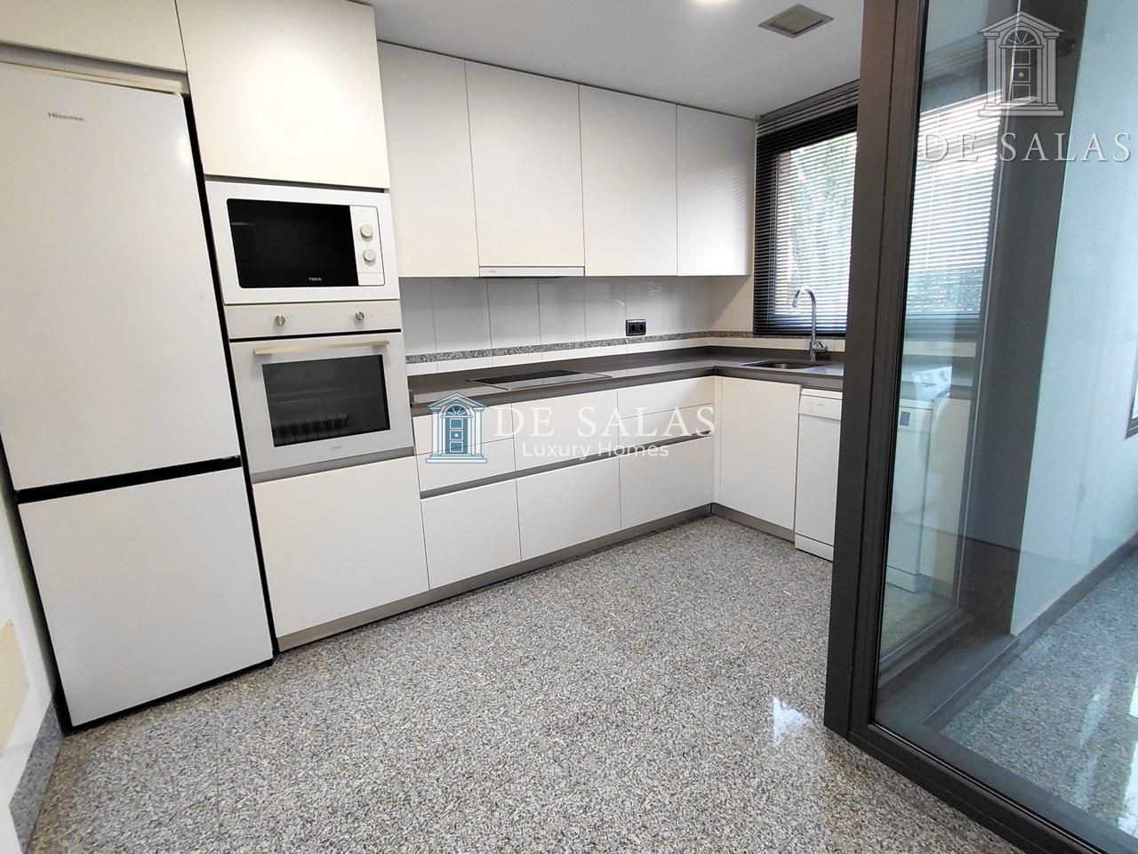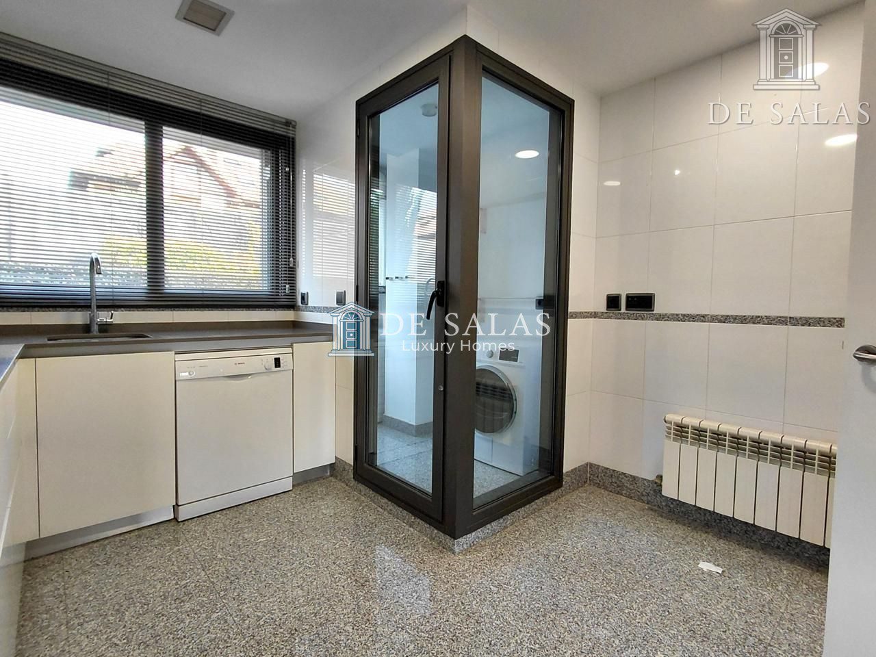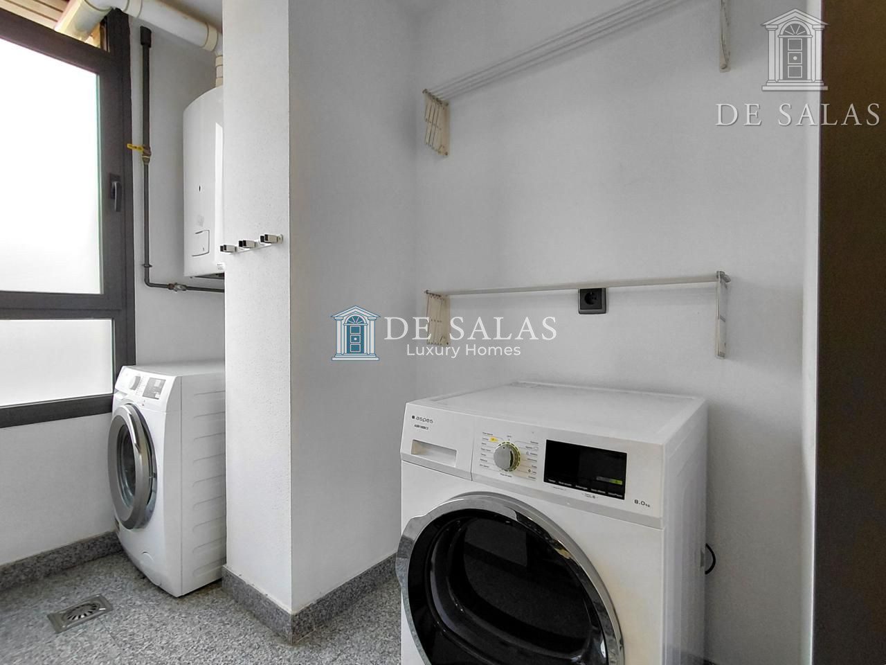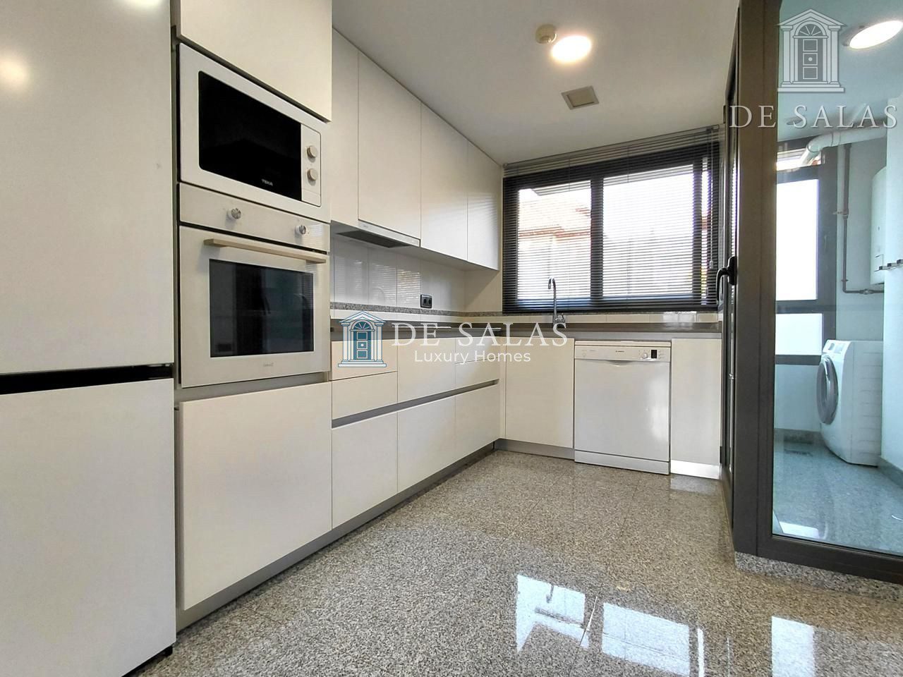 – Cocina office con electrodomésticos y tendedero.
