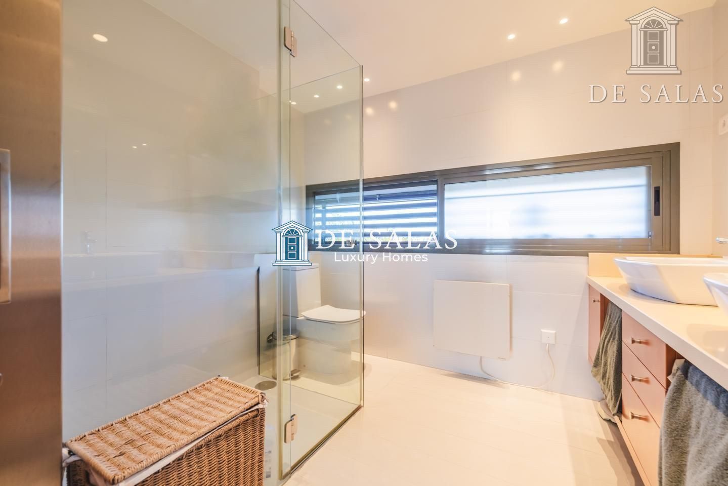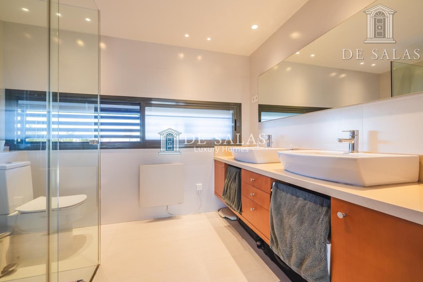 La zona privada cuenta con tres dormitorios y dos baños, teniendo el dormitorio principal su baño en suite y muchos armarios con gran capacidad de almacenaje.