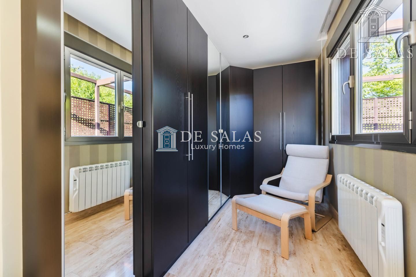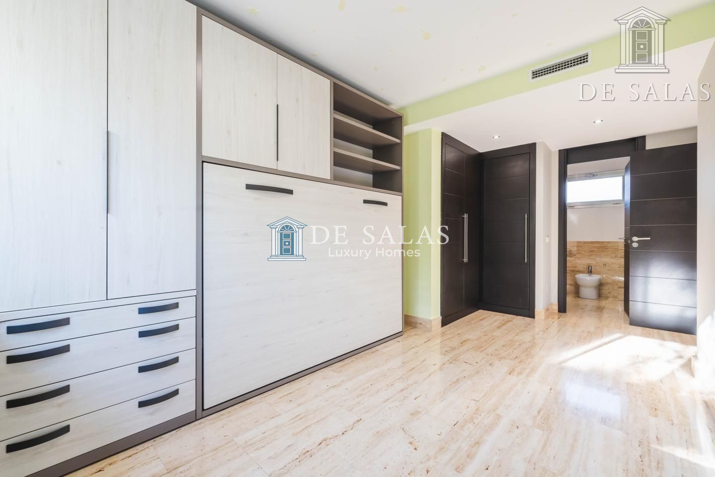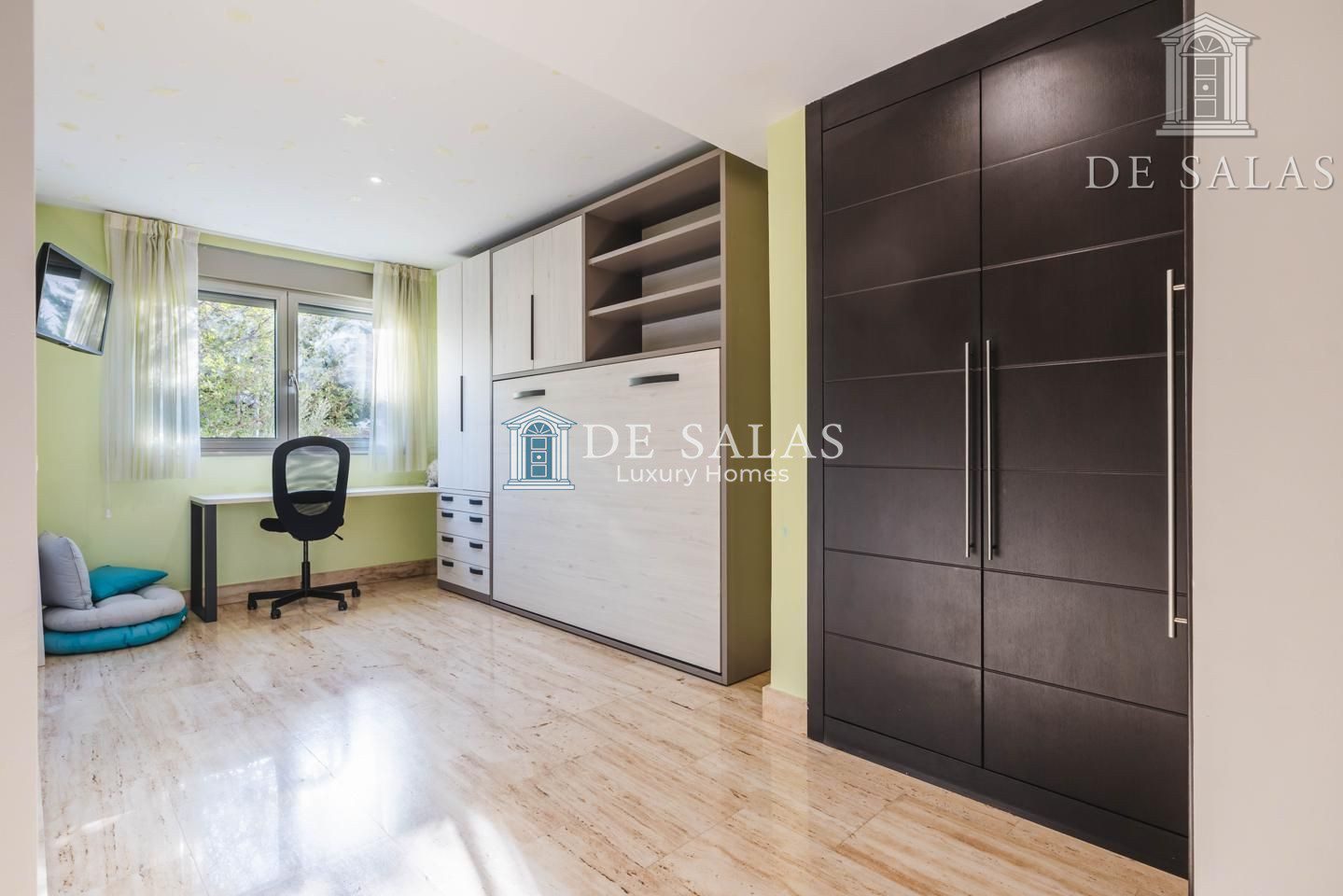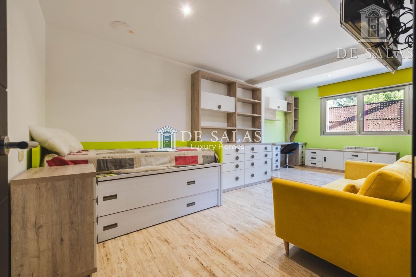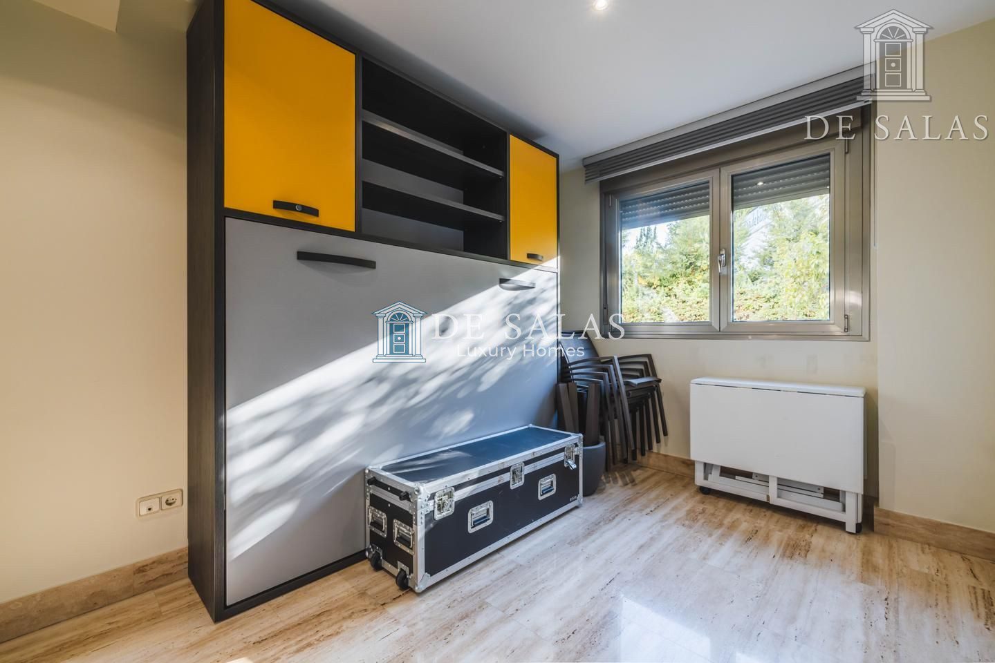 Existe además una amplia estancia anexa al despacho, que se puede utilizar como cuarto de juegos o unirlo, creando un gran dormitorio para los niños.