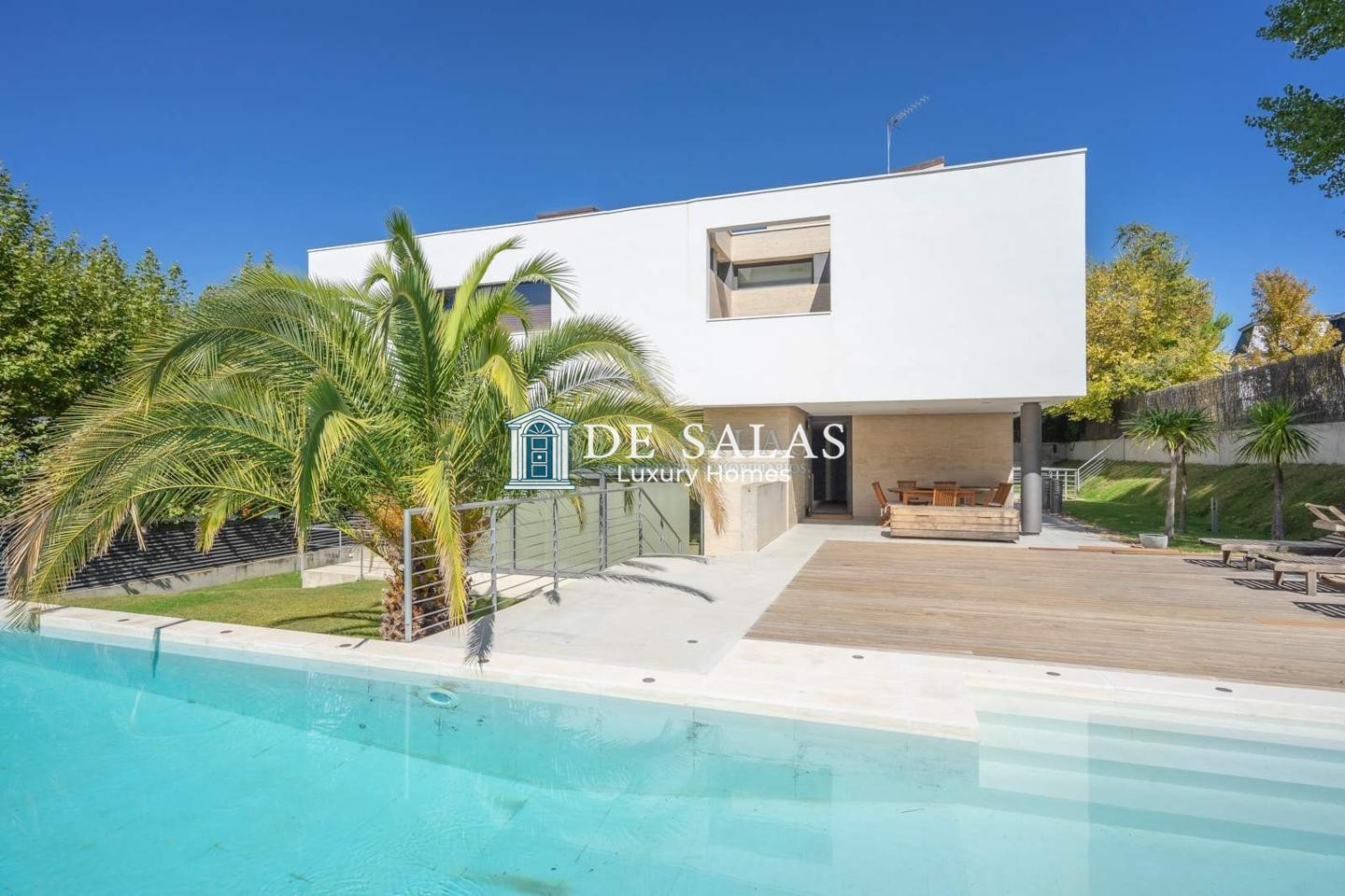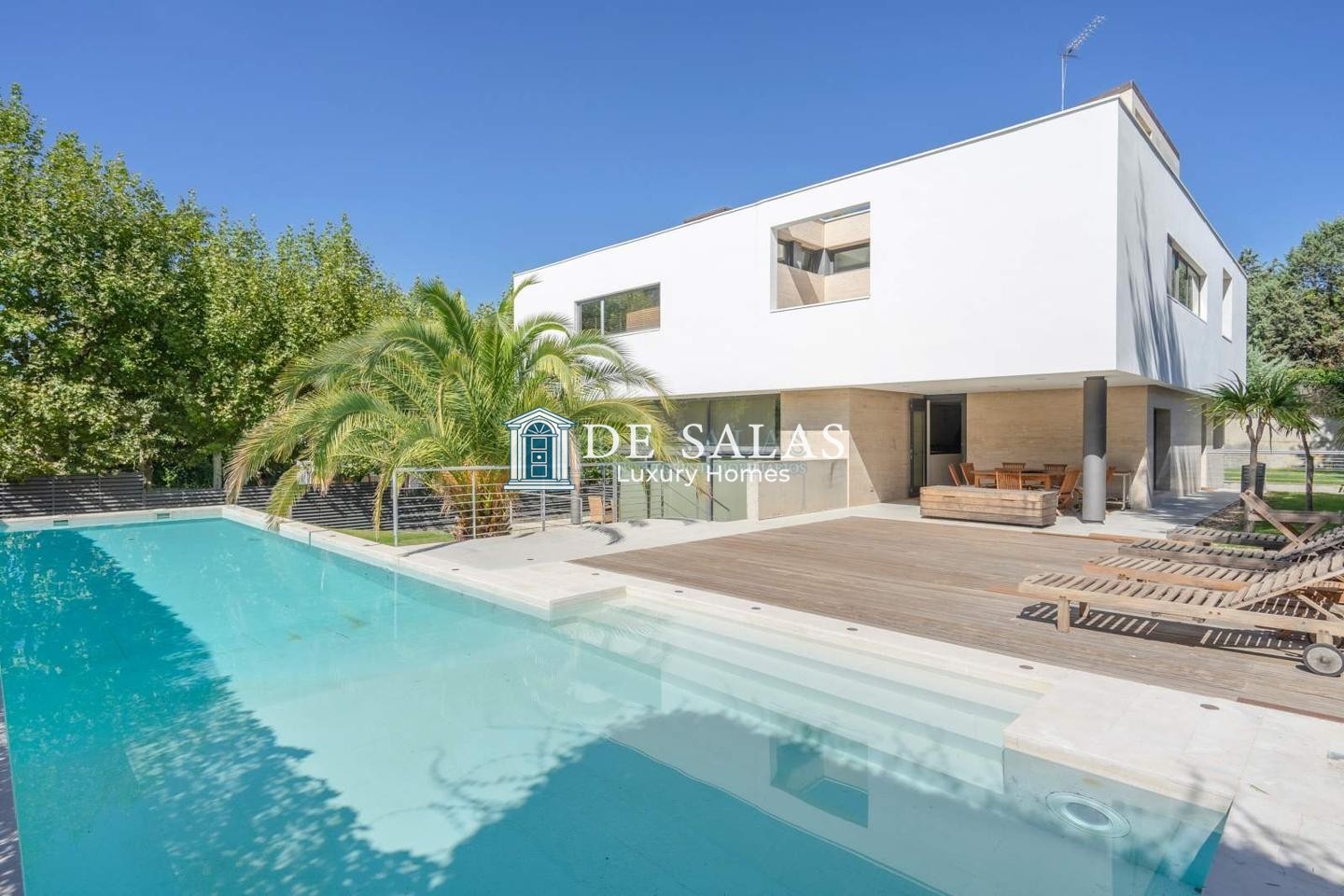 De Salas Luxury Homes. Lineas modernas, depuradas, diseño arquitectónico de vanguardia, así se define este Chalet Independiente, amueblado, con piscina y amplias zonas verdes. Ubicado en pleno corazón de la reconocida y demandada colonia residencial Puerta de Hierro. Cuenta con servicio de vigilancia, seguridad 24 horas. – Ideal para casa y oficina – ofrece una fusión excepcional entre el confort hogareño y la funcionalidad para un uso tanto residencial como profesional. Puerta de Hierro es una zona residencial exclusiva ubicada en el noroeste de Madrid. Un entorno privilegiado y natural, que le ofrece además de seguridad, la comodidad de estar a pocos minutos del centro de la ciudad. Este inmueble, distribuido en cuatro plantas (sótano, baja, primera y torreón), ofrece una disposición inteligente y versátil: Un amplio salón que se extiende hacia una zona cubierta al aire libre, comedor espacioso. Una habitación destinada a juegos o sala de estar, junto a un despacho para actividades profesionales. Cuatro dormitorios dobles, cada uno con su propio baño incorporado para brindar privacidad y comodidad. Zona de servicio compuesta por dos habitaciones de servicio y dos baños de servicio. Completa la vivienda un estudio ubicado en el torreón, un práctico guardarropa y aseo adicional. Disfruta de una cocina equipada con un área de oficio, cuarto de plancha para las tareas del hogar. Existen varios espacios dedicados exclusivamente a instalaciones necesarias para el funcionamiento eficiente de la propiedad, pues dispone de climatización eficiente, mediante suelo radiante y aire acondicionado individualizado por estancias. Destacar que cuenta con ascensor.