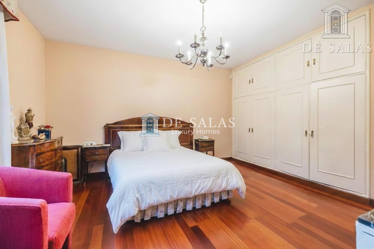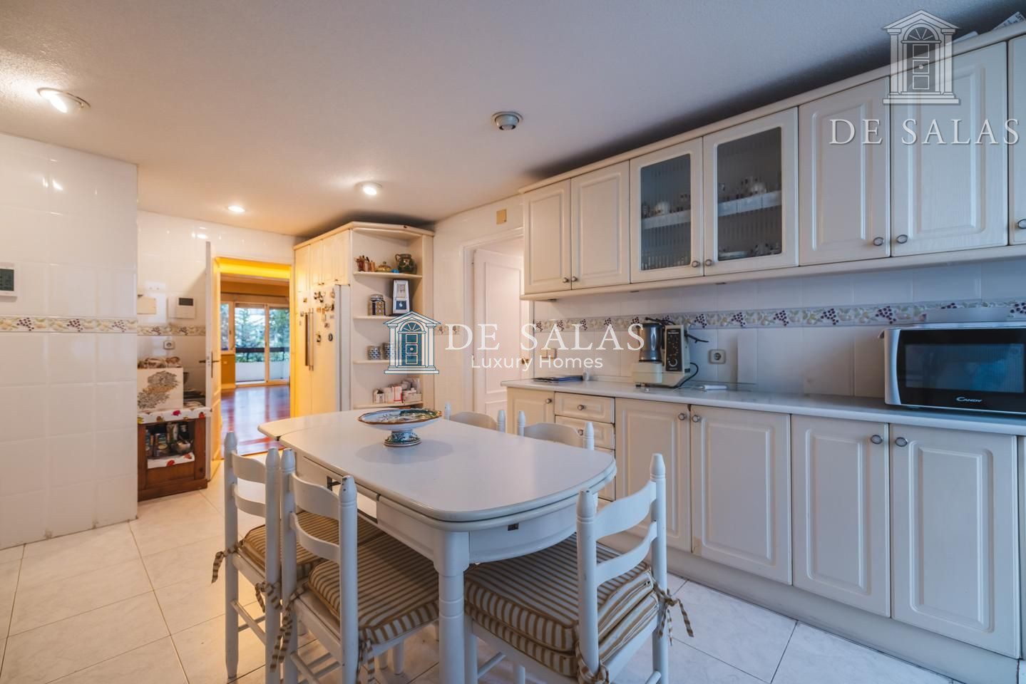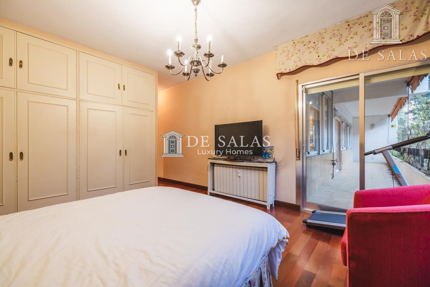 La distribución actual cuenta con cinco dormitorios de gran amplitud y tres baños. El salón es una de las piezas centrales de la propiedad debido a su gran tamaño y a sus generosos ventanales, que conectan directamente con una terraza de 21 m² orientada al sureste para aprovechar la luz del sol desde las primeras horas de la mañana. La vivienda cuenta también con comedor independiente. Entre sus detalles funcionales, la casa dispone de calefacción central con contador individual, aire acondicionado, sistema de alarma y un práctico cuarto tendedero.