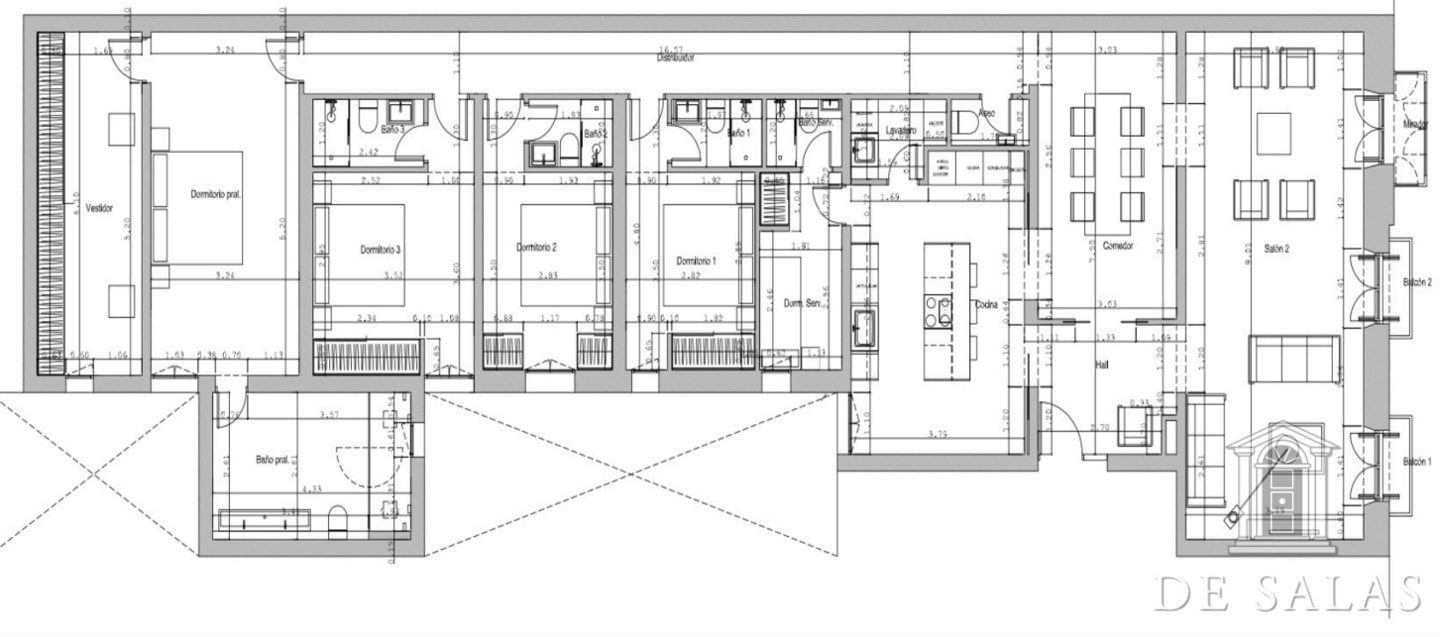 Nada más accedemos a la vivienda con un hall de entrada que distribuye tanto a la zona social con un amplio salón que tiene distintos ambientes, cocina abierta y completamente equipada y un gran comedor, que tiene al lado un aseo de cortesia, contigua a la cocina esta la habitación completa de servicio, pasamos a la zona de noche, con un total de cuatro dormitorios todos ellos en suite, con armarios empotrados y la habitación principal con más de 30 m2 baño en suite con bañera y ducha y un increíble vestidor.