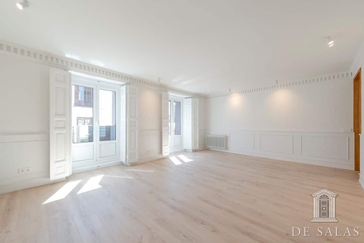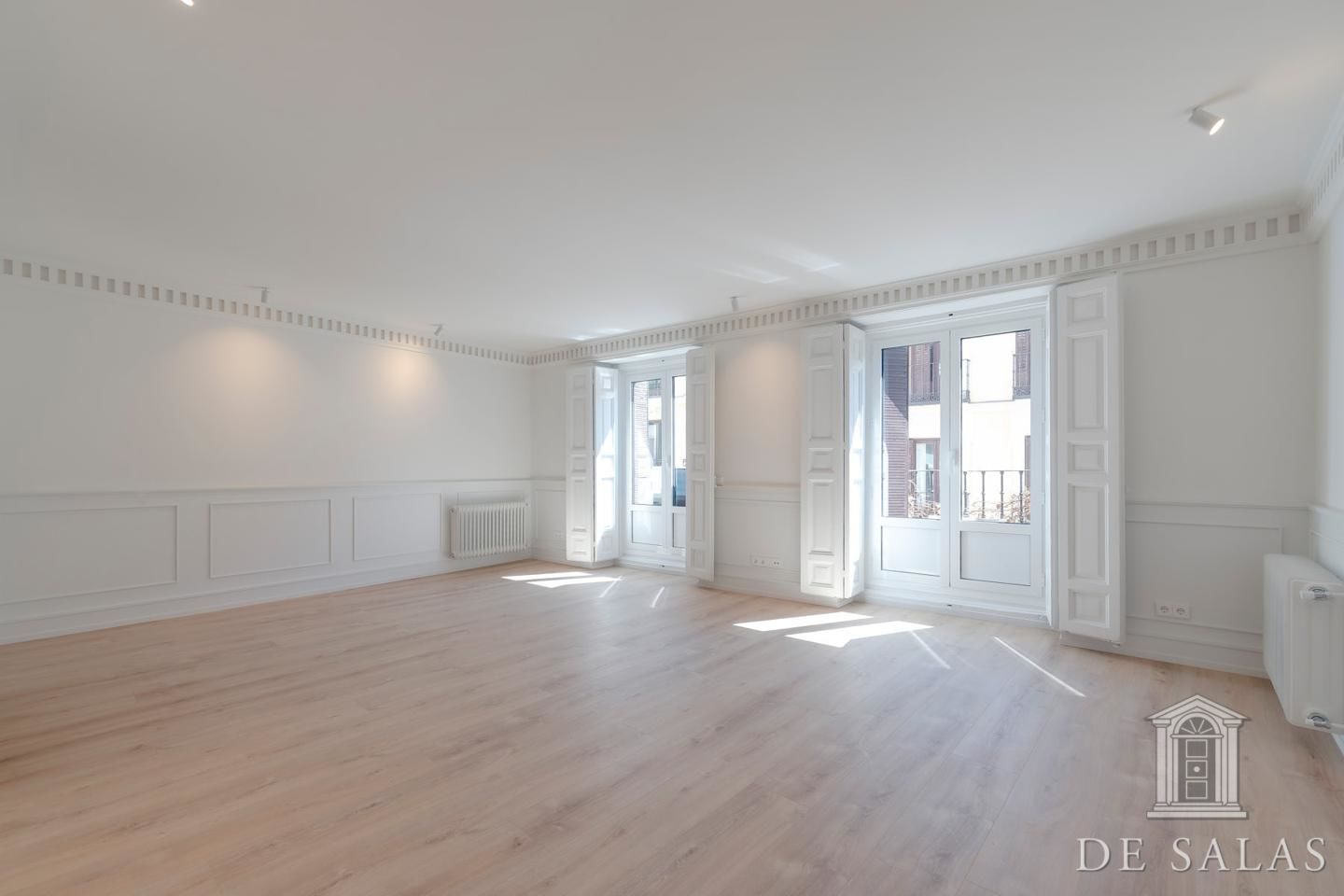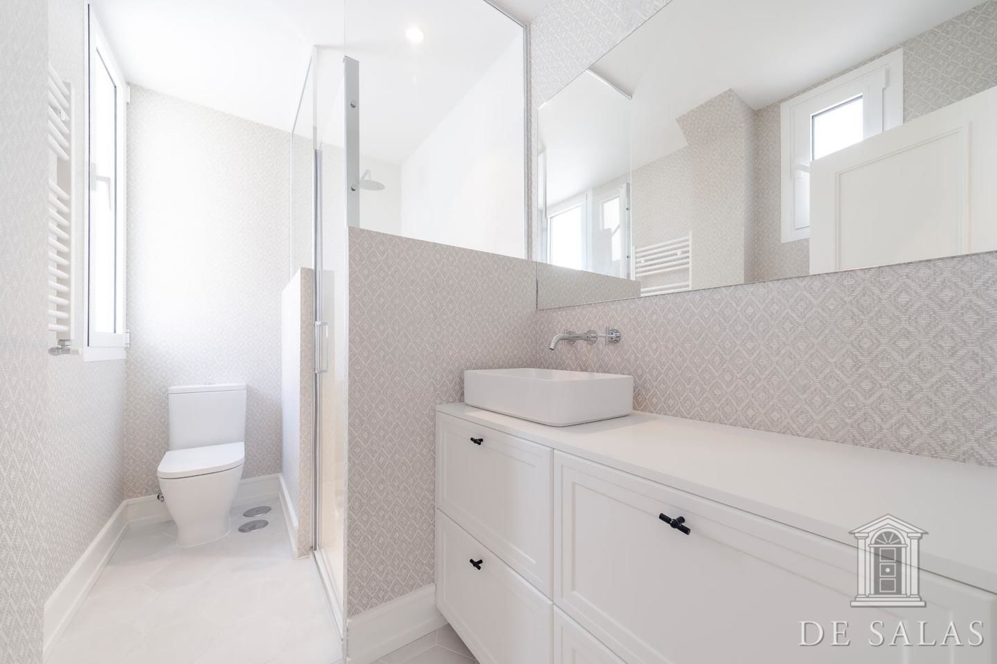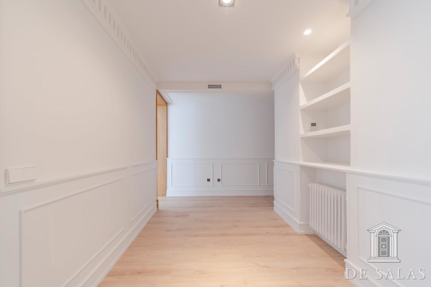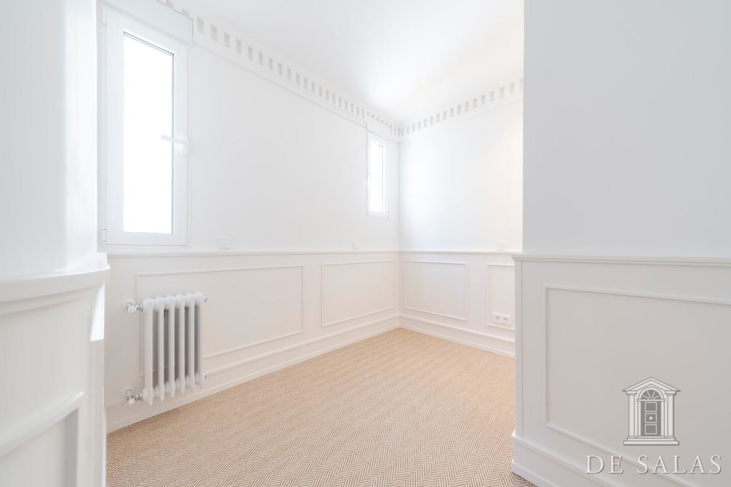 De Salas presenta esta excelente propiedad de lujo exterior en la mejor zona del barrio de Justícia, en el distrito Centro. La vivienda se encuentra reformada completamente a estrenar. Cuenta con 145 metros cuadrados construidos, un amplio y luminoso salón con dos balcones a la calle, comedor y cocina independiente equipada con todos los electrodomésticos de primera gama. La zona de dormitorios se distribuye en tres dormitorios, uno en suite, otro de buen tamaño que da servicio a los demás dormitorios y un aseo de cortesía. Posee aire-acondicionado y calefacción por conducto.