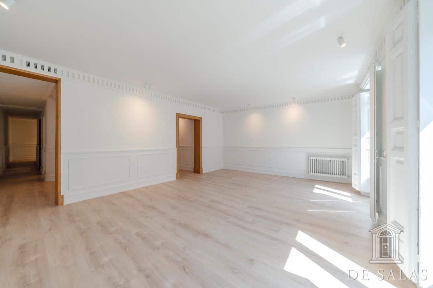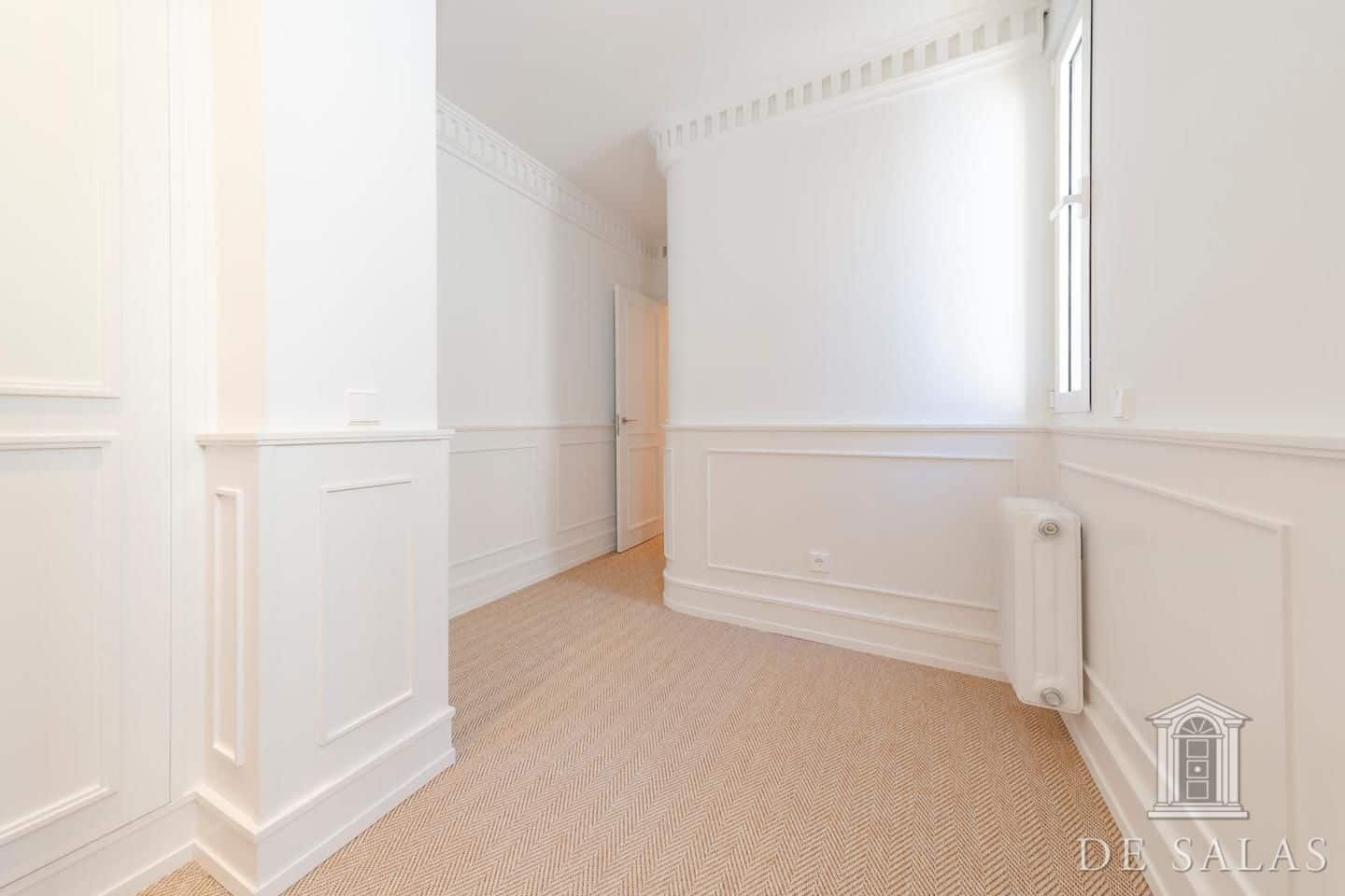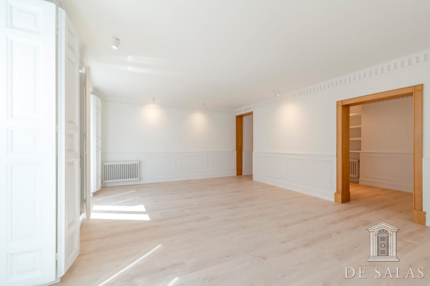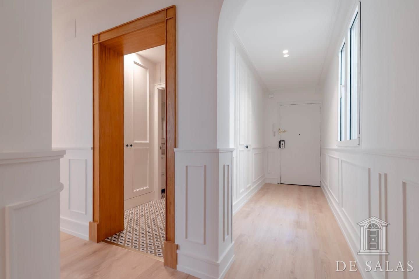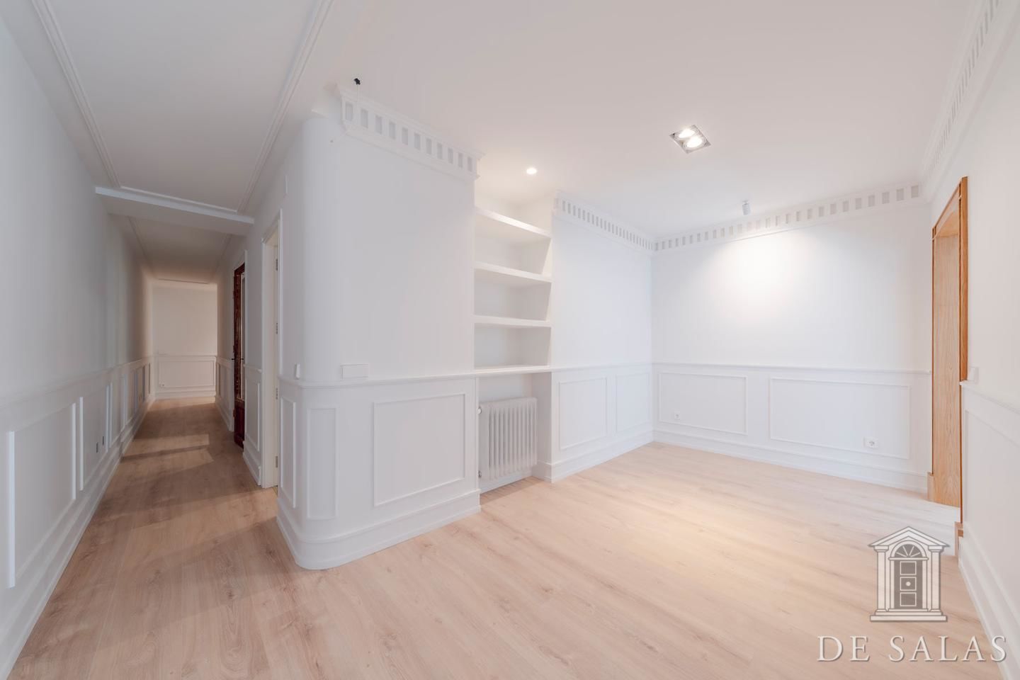De Salas presenta esta excelente propiedad de lujo exterior en la mejor zona del barrio de Justícia, en el distrito Centro. La vivienda se encuentra reformada completamente a estrenar. Cuenta con 145 metros cuadrados construidos, un amplio y luminoso salón con dos balcones a la calle, comedor y cocina independiente equipada con todos los electrodomésticos de primera gama. La zona de dormitorios se distribuye en tres dormitorios, uno en suite, otro de buen tamaño que da servicio a los demás dormitorios y un aseo de cortesía. Posee aire-acondicionado y calefacción por conducto.
