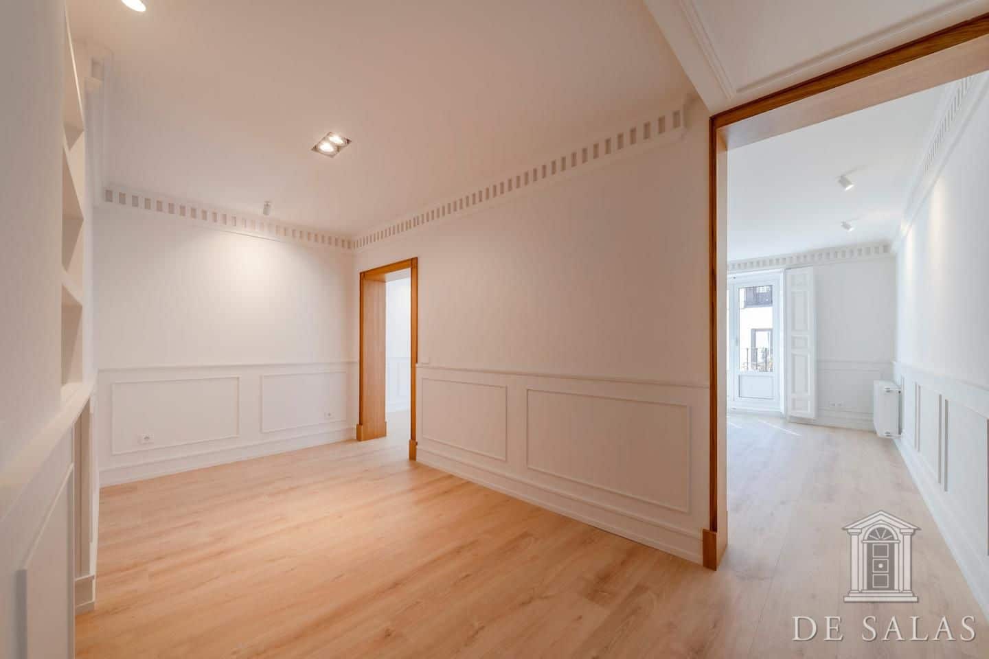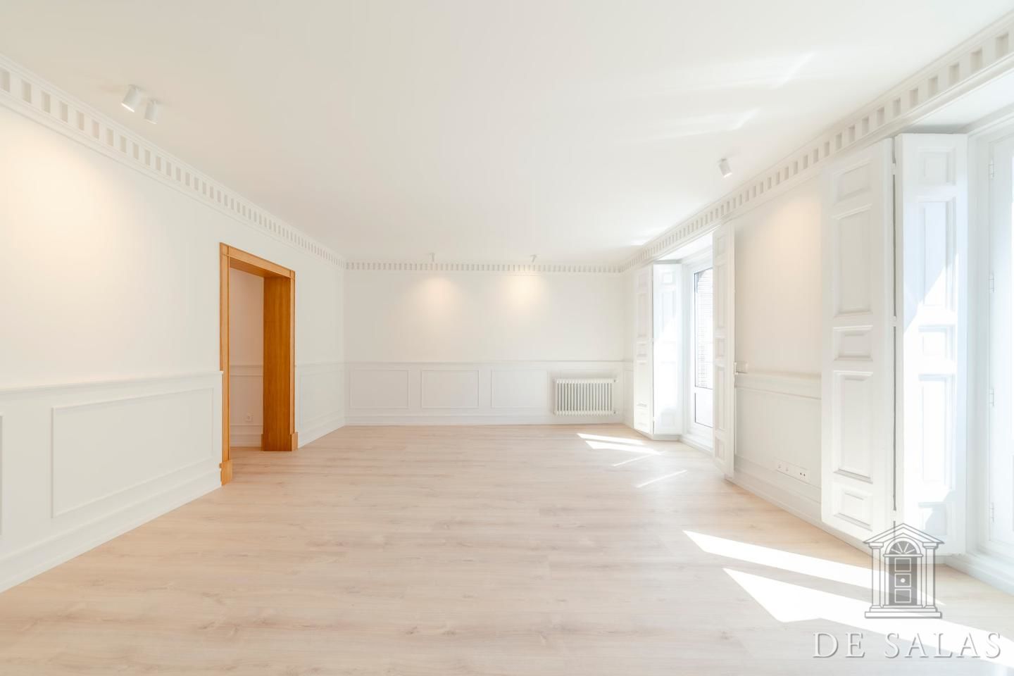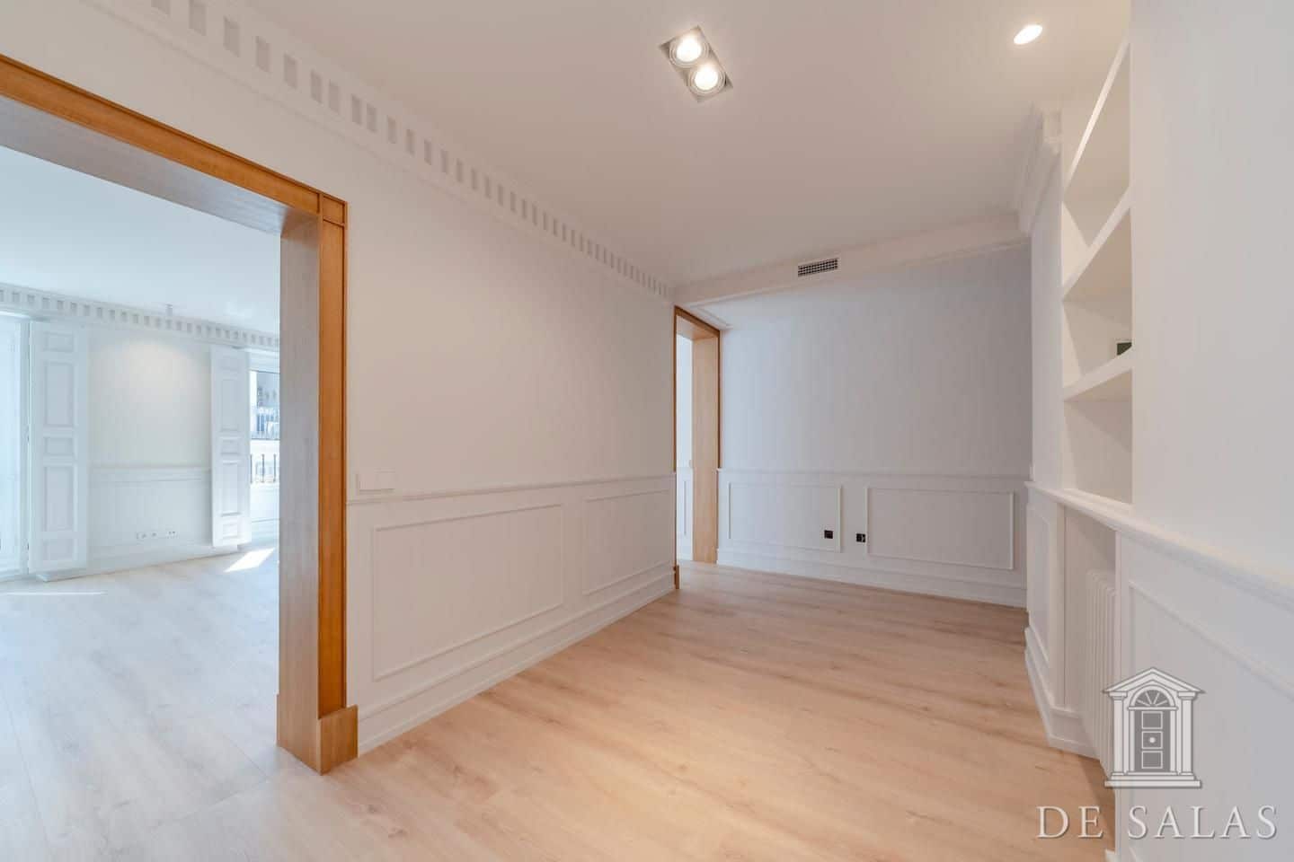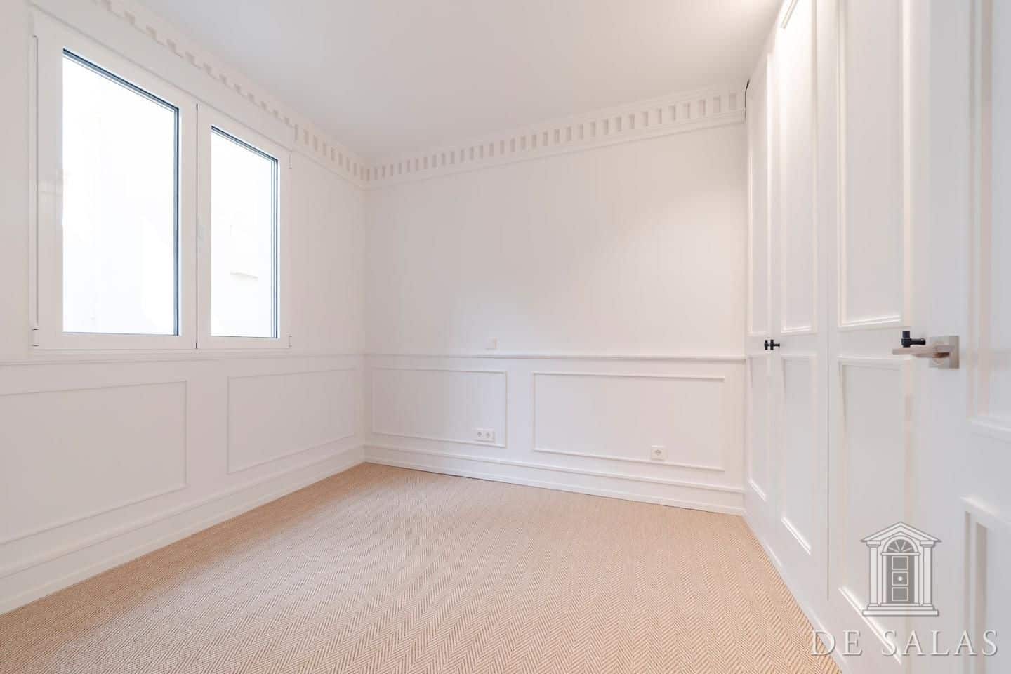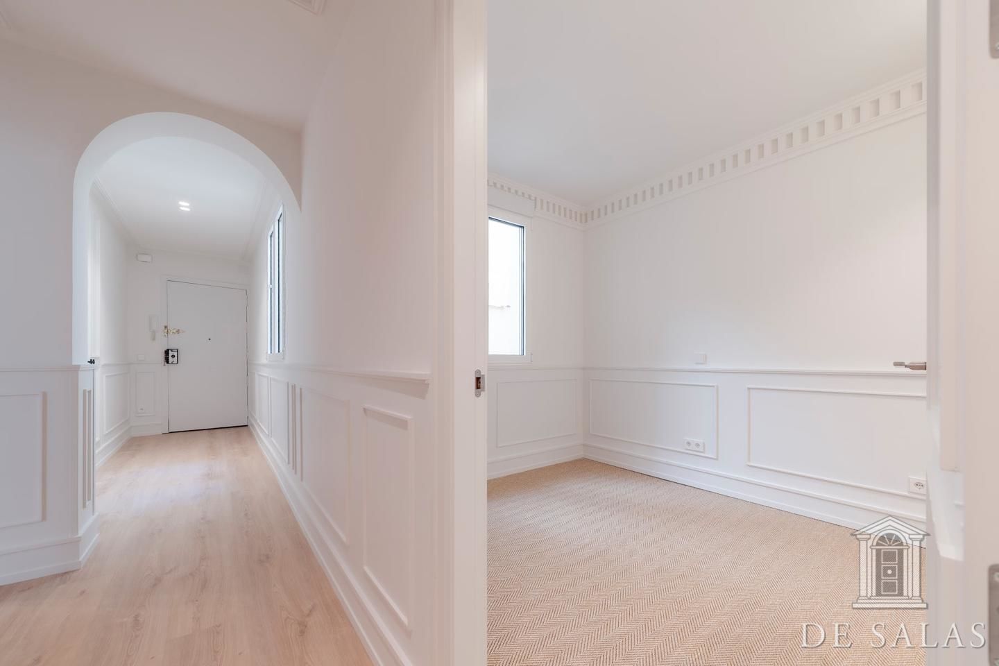 De Salas presenta esta excelente propiedad de lujo exterior en la mejor zona del barrio de Justícia, en el distrito Centro. La vivienda se encuentra reformada completamente a estrenar. Cuenta con 145 metros cuadrados construidos, un amplio y luminoso salón con dos balcones a la calle, comedor y cocina independiente equipada con todos los electrodomésticos de primera gama. La zona de dormitorios se distribuye en tres dormitorios, uno en suite, otro de buen tamaño que da servicio a los demás dormitorios y un aseo de cortesía. Posee aire-acondicionado y calefacción por conducto.