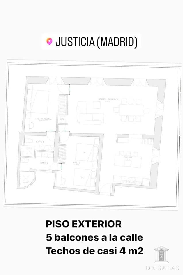 Se entrega reformada con máximas calidades y un cuidado diseño exclusivo. Espacios amplios y luminosos, con techos de 3,4 m de altura, totalmente exterior con cinco balcones a la calle en esquina y luz natural durante todo el día. La distribución es perfecta. Gran salón/comedor, dos dormitorios en suite y amplia cocina abierta al salón equipada con electrodomésticos de gama alta de Bosch.